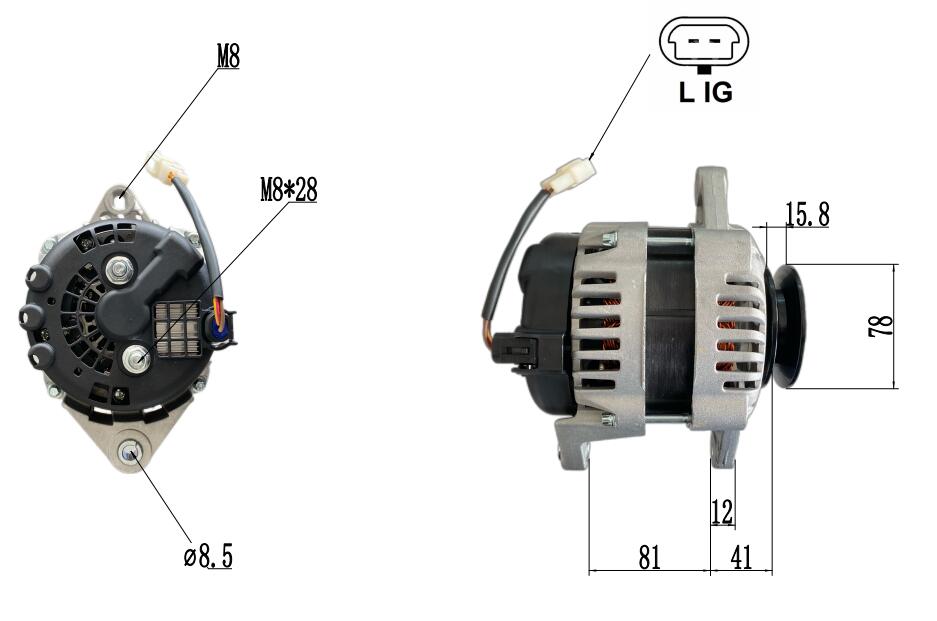 7005002, 7259142, 222943, 30090100070, ALD2586LP, ALD2586ML 12V 96A 1PK Delco generátorok DOOSAN DX55-höz, a SANYOU gyártója.