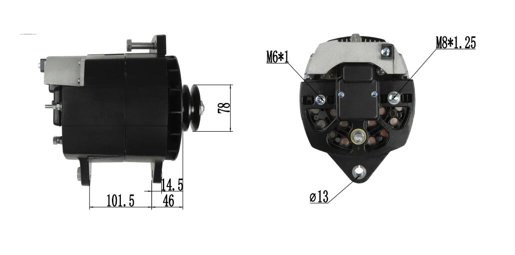 2 hornyos (2PK) szíjtárcsával és szabványos 2 kivezetéses (B plusz és D plusz) csatlakozással rendelkezik az eredeti rögzítési pontok és a szíjpálya használatával történő közvetlen telepítéshez
